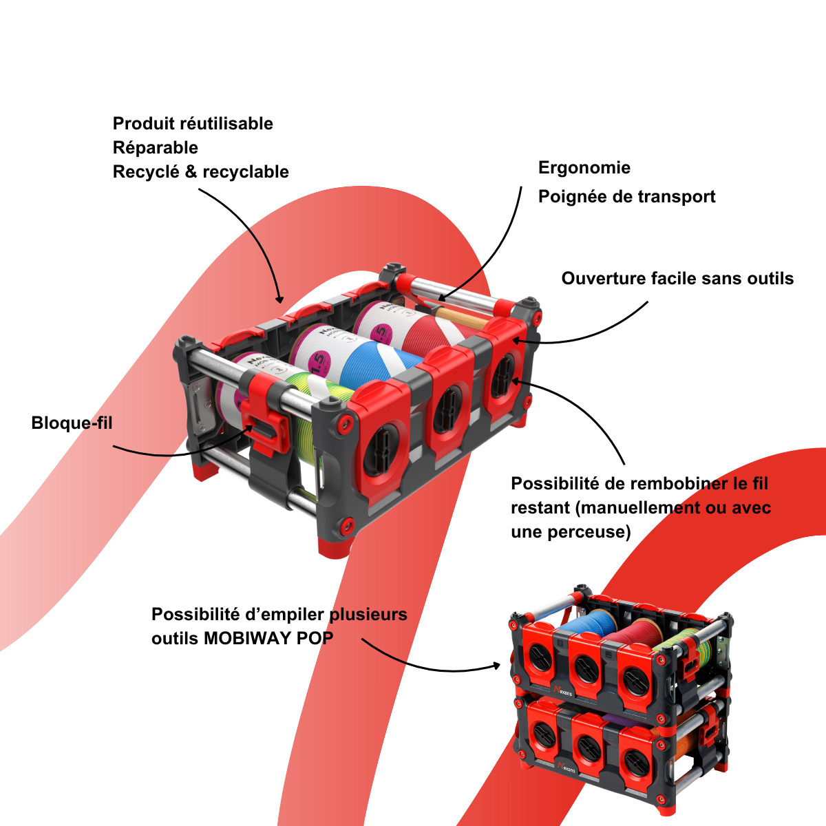 The tool, together with the new, resolutely innovative spool format, brings all its benefits, making transport even easier and allowing up to 6 wires to be pulled at the same time. This new, highly professional solution reduces uncomfortable postures and maximises safety on the worksite.